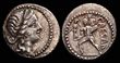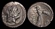 L. Rubrius Dossenus. BC 87. Silver Quinarius (1.97g). Rome.DOS-SEN Laureate head of Neptune right, with trident behind his neck. Rev. L. RVBR[I] Victory advancing to right, holding wreath and palm frond; altar to right.Lovely golden lustre; scarcely encountered so attractive and struck on fine silver. Struck on a irregular flan, otherwise, VF.Babelon (Rubria) 4. Crawford 348/4. Sydenham 708. (P)