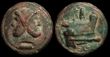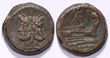 Anonymous. BC 211-208. Bronze As (43.27 g). Sextantal standard. Mint in central Italy.Laureate head of bearded Janus; I (mark of value) above / Prow of galley right; hammer and apex above; I (mark of value) to right; RO[MA] in exergue.F/aVF.Crawford 59/2; Sydenham 150; BMCRR 44.