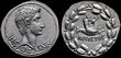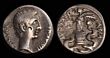 Octavian, as Sole Imperator. BC 30-27. Silver quinarius(1.72g). Uncertain Italian mint or Ephesus, ca. 29-26 BC.CAESAR-IMP VII, bare head of Augustus right / ASIA-RECEPTA, Victory standing left on cista mystica, wreath in outstretched right hand, palm in left over shoulder, serpents to either side entwined below. gVF. Superb choice example for the type.Scarce!. S.1568; RIC 276; RSC 14; BMC 647. (P)