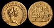 Claudius. AD 41-54. Gold Aureus (7.57g), Lugdunum Mint.Laureate head of the king facing the right, the legend' TICLAVDCAESARAVGPMTRPIII' around the field, Rev: Battlement wall enclosing praetorian camp in which soldier stands, spear in right hand, with aquila in front of him, behind soldier, pediment with fortified flanking walls, with lettering 'IMPER RECEPT' across top of front wall.VF+ with usual test mark on the obverse.Very Rare. RIC 25The Praetorian Camp was situated to the northeast of Rome, beyond the Servian Wall, between the Porta Viminalis and the Porta Collina. Claudius, the first of many emperors to be elevated by the Praetorian Guard, commemorated his ascension by issuing Aurei and Denarii with a reverse type inscribed with IMPER RECEPT.Far superior to the example sold at Marudhar Arts, A45, Lot 64 (realized US$1850). (P)