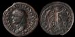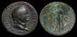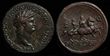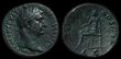 Nero Claudius Drusus died BC 9. Bronze Sestertius (24.4g) Rome struck under Claudius 41-42AD. Bare head left rev Claudius seated left on curule chair holding branch, weapons & armour on either side of globe beneath. Some field tooling, porosity gF. S-1896, RIC 93. Rare. (P)