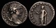 Diva Faustina Senior under Antoninus Pius. AD 141-161. Silver Denarius (3.32g) struck under her husband Antoninus Pius, Rome. DIVA FAVSTINA, draped bust of the deified Faustina I to right, rev AVGVSTA, Ceres veiled, standing facing head right holding long scepter in her right hand & grain ears in left. RIC 358, S-4581. Near EF. (P)