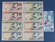 $10 QEII ND (1994) suffix K. $10 QEII ND (2001) suffix M. $5 (2), $10 QEII ND (2003, 2004) suffix G,M,A. $5, $20 QEII ND (2008), $20 QEII ND (2012). $10 QEII ND (2019). UNC. B216k, 222m, 226g, m, 227a, 231a, 233, 237a, 241a. P-32k, 38m, 42g, 43a, 47a, 49, 53a, NL cat US $312.50=A$487. (9)