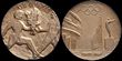 1992 Barcelona XXV Olympic Participants medal. Legend above Barcelona Olympic emblem & stylised jumping athlete, rev spiral & bolt of lightning. Burnished copper, 70mm, 254g, by X Corbero, struck Madrid, Spain, in pouch of issue. (P)