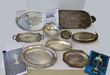 Silver plate. Tea/coffee pots, creamers, sugar bowls, trays, dishes, salt/pepper shakers, water jugs, cruet sets c1900-50s. Some Australian made, some British made. Inc matching sets. Nice quality designs. No damage or excessive wear apparent. (34 items)