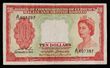 $1, $5, $10 QEII 31-3-1953 VF-gVF ($10 gVF). Malaya 5 cents KGVI 1-7-1941 F/VF. Straits Settlements $1 KGV 1-1-1935 aVF. F-gVF. P-1a, 2a, 3a, 7b, 16b. (5).