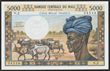 5000 Francs ND (1970) sig Dussine/Makalou series V2. UNC, sl internal paper crease. P-14b, B204b retail cat UNC US$750 = A$1125. Very scarce high grade. (P)