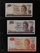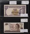 $1, $2, $5, $10, $20 QEII ND (1977) sig Hardie Type I, $2 aU, $10 last prefix 33E t/f UNC, $20 Star YJ. Except where mentioned UNC. $1, $2, $5, $10, $20 QEII ND (1981) sig Hardie Type II $1 aU, $5 toning UNC, $10 aU, $2 & $20 UNC. $5 Hillary 1992 sig Brash uncut blk of 4 in Reserve Bank folder AA prefix. NZ cat value $1118. P163d, 164d, 165d, 166d, 167d, 169d, 170a, 171a, 172a, 173a, 177b. (11)