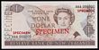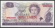 $2 QEII ND (1981-85) sig Hardie type 2 opt Specimen in red 3 times on front & once on back. Perforated Specimen left & right. First prefix EAA 000000. UNC. P-170as.