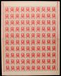 ND (1917) 3 Kopeks Alexander III postage stamps currency used as small change (special overprint on reverse). Comp sheet of 100 now separated into 2 half sheets. Approx 10 banknotes with hinge marks o/w all UNC. P-20 cat $500.