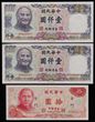 1000 Yuan ND (1981) (2), 100 Yuan ND (2011) (10), 10 Yuan ND (1978) Kinmen opts front & back. UNC. P-1988, 1998, R112A. B391a, 501, 386 cat US$190. BNB US$150. (13)