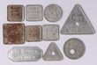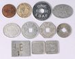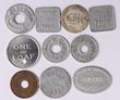 Bread Tokens: JW & A Cox 1 loaf, AJ Croft ½ loaf (1 loaf token cut in half), Helensburgh & Lilyvale Coop Soc Ltd ½ loaf, these 3 all Rarity 2. Plus 7 others, 1x bronze, rest aluminium. (10