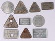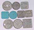 Milk Tokens: FJ Bruyn, Broadmeadow ½ pint steel & 1 pint alum cut in half for ½ pint. Plus 8 others. (10)