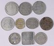 Bread Tokens: McEwen ½ loaf token alum, Commonwealth Watkins 1 loaf blank reverse brass, these 2 both rarity 2. Plus 8 others in aluminium. Mostly VF-EF. (10