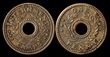 WWII 1/- Type 3/D. Unlisted variety Type 3 has a die run at central hole. This combination 3/D not listed. gVF. Rare. (P)