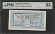 World War II: Internment Camp Hay 6d blue & black banknote 1-3-1941 signed Mendel/Stahl, s/n C39134. Graded PMG 55 'About Uncirculated' as fresh condition with no visible trace of any folds. Fel AU-910a, SB-551a. Ren 1 cat $12,000. McD cat $19,500. Very attractive & rare. (P)