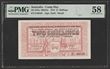 World War II: Internment Camp Hay 2s red & black banknote 1-3-1941 signed Mendel/Stahl, s/n E40536. Graded PMG 58 'Choice About Uncirculated', as fresh condition with no visible traces of folds. Fel AU-912a, SB-553a. Ren 7 cat $15,000, McD cat $27,000. Very attractive & rare. (P)