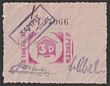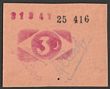 World War II, Internment Camp Hay, Camp 8 ND (1941) 3d (Nissan Hut design) no 37066 with handstamp Sample Without Value & 2 sigs. Red on pink (toilet) paper, 65x52mm. EF. This note was given to Rabbi Falk by camp internees when he visited in December 1940. Feller AU-942. C-1232, MVR Hay Internment Camp Notes this note is illustrated pg 70. Also illustrated Australian History 1901-2001 As seen through banknotes, pg 217. An important note. Extremely Rare with at most several known. Ex Dave Allen collection. (P)