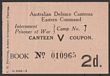 World War II, Internment Camp Hay, Camp Seven Bank ND (c1941) Australian Defence Canteens Eastern Command Camp no 7 2d canteen coupon from book no 010965, on pale pink card. AH Pettifer, Acting Government Printer. UNC. The camp no '7' has been die cut through the paper. Only several sets of these notes are known, all notes have the same serial number & are believed to be Specimens sent to the camps, see letter (Feller pg 107). This note illustrated Australian History 1901-2001 As seen through banknotes by J & E Dauer & J Pettit, pg 223. C-1202, Feller-961 cat US$2000. Very Rare. Ex Dave Allen collection. (P)
