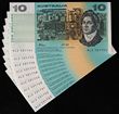 $10 Johnston-Fraser (1988) Bicentenary 1st release EF to aU (3), 2nd release UNC (4), mostly EF to aU (19). R-310a, 310b. (26).