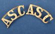 Army.c1900-12 Australian Army Service Corp brass, curved shoulder titles. These ASC titles are scarce & both marked 'Stokes & Sons, Melb.', have their lugs & in VGC. (2) |
