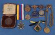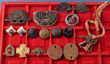 Army.1914-15 Gallipoli Star, original 1990 medal, reverse with maker's AJP initials, Foreign Service commemorative medal plus ribbon bars (5), RAA hat, collar & shoulder title badges (25) & others (10). Some missing lugs/pins. (48) |