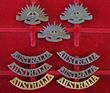 Army. c1914-18 AIF Rising Sun collar badges (3) & 'AUSTRALIA' titles (brass & oxidised) (6). The titles have various style lugs. All are comp. (9) |