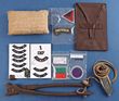 Army. WWI & WWII insignia (18) & equipment (3). Inc set of 1/INF/AUSTRALIA epaulette badges area 1914-15 (note the AUSTRALIA is the large English-made type, INF also appears English-made), mint AUSTRALIA titles cWWII (8), WWII pattern pocket knife & lanyard (type introduced early 1945) in excellent condition, Greg Steel wire cutters cWWII, 1943 shell dressing, WWII colour patches (3) unused & unknown pouch dated 1945 (unissued). The WWI AUSTRALIA is missing a lug, the other lug is half attached. (22 items) |