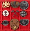 Army. c1930s Army hat, cap, collars, proficiency badges etc. Crossed Rifles (Marksman) (20), Artillery collars (21), Machine Gunner (7), Signal Corp (2), collars (8), Padre/Chaplain hat (2), collars (7), Bandsman (2), Service Corp collars (7), Pioneer (Crossed Axes) (2), Aust Military Forces buttons (10). Plus 2 framed photos. (90) |