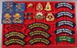 Army. caWWII & later cloth trade, rank (inc metallic thread) & rising sun badges. Several of these in pairs. Also a pair of oxy AWAS titles. Excluding prs, all diff. Mostly G-VGC. (57 items in total) |