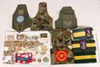 Army.c1940-2000c cloth badges & trench art. Inc WWII colour patches (6), coloured lanyards (9) which appear to be Cadet, full clip of .303 practice ammo (grooved to denote such), trench art RAE match holder (with nice enamel badge & engraved) cWWII, metal trench art fish knife Milne Bay 1943-4 (1 side of plastic handle is damaged), various cloth badges & Commando wing on a brassard named to 2 CDO Coy Sergeant Bednare (pre 1990s). Interesting lot. (39) |