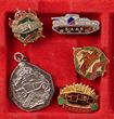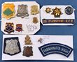 Army. WWII era badges inc WWII Rising Sun hat (2), collars (2), KC & QC Return From Active Service badges, VDC patches (2). WWII HMAS 'horse show' sweetheart badge, 1930-42 RAA & Aust Corp of Signals hat badges, 1990s Armoured Corp of Signals hat badges, 1990s Armoured Corp hat badge plus other patches, booklets etc. (17 items) |