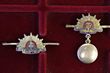 1939-45 Rising Sun sweetheart badges (2). All pins etc to rear intact. No damage to enamel. The locket of one of the Rising Sun's in empty. Both Rising Suns are about 17mm high. (2) |