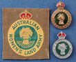 Home front 1939-45 Aust Women's Land Army hat badge & cloth sleeve patch, both unissued plus British Women's Land Army enamel hat badge. All pins & enamel are complete. VGC. (3) |