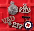 c1914-45 VAD Voluntary Aid Detachment badges for Service in Australia. Inc cWWI metal pocket badge & matching shoulder title for Area 217. Also cWWII VAD at badge, enamel VAD Eastern Command brooch badge & 3/VAD shoulder title for Victoria. No enamel damage. All pins/lugs etc are present. G-VGC. (5) |