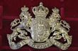 Imperial Bavaria. 1914 helmet plate, Enlisted man's, w/m, 2x loop lug reverse, minus cross to top of orb o/w aVF. |