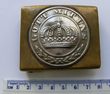 Imperial Prussia 1847-1895 Belt Plate, Enlisted Ranks. Large, early version 64mm x 53mm (to accommodate 50mm wide belt). W/M, large state disc with rayed Cross to Crown. Brass, stepped side plate with brass roller & prongs & brass tip end bracket, 4 x solder points to rev (some evidence of Epoxy repairs to solder). Type in use from 1847-1895. VGC. Scarce |
