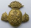 Imperial Prussia.1895 model Field Artillery Enlisted Man's cartouche box badge. Brass, 'Bomb' with flaming top & sides, 'FWR' cypher to centre. 2 of the 3 lugs intact to reverse. 86mm. Less one lug to reverse. Near EF. Very scarce. |