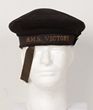 Navy. 1914-18 Royal Navy Rating's cap, HMS Victory. A private purchase item. Dark blue (virtually black) wool cloth, lined & padded in black cotton. Leather sweat band marked 'real roan leather' & with faint owner's name in ink ('Jack Holsworth'?). Herringbone-twill black cotton chin strap. Correct 1914-18 vintage tally in bullion on black cotton/silk ribbon: 'H.M.S Victory'. (HMS Victory was the Royal Navy Barracks at Portsmouth, a land-based training establishment). Virtually free of moth. VGC. A lovely, classic example of a WWI rating cap