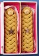 Japan. 1939-45 Army officer's shoulder epaulettes, dress rank. Knotted boards with silver star to centre, yellow piped rope & topped with brass buttons with cherry blossom motif. Nice attractive matching pr, VGC |