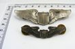 USA. 1950 USAAF Pilot Wings by 'N.S. Meyer Inc, New York, Sterling', full size in oxidised silver with clutch-grip reverse, 78mm. Together with a miniature set, also for pilot. Reverse stamped: 'Sterling/S21'. Clutch-grip, oxidised silver, 52mm. EF |