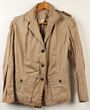 Army. WWII women's cotton khaki Army jacket for AWAS or AAMC. Light weight cotton jacket with 2 lower pockets. Open lapel style with barrel cuffs, loops for a cloth belt (not present). Only 1 cloth shoulder board (removeable type). Unissued, made by contractor V590 inc 1942, 1 oxidised KC button is missing. Has paper stores label attached. One epaulette only. No damage or wear. Soiling from storage & handling. Rust marks to rear. Unused tunic, not often seen.