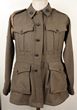 Army WWII khaki wool 4 pocket service dress jacket to an enlisted rank. Label to contractor V300, made in 1942. No owner's name. Jacket style is similar to WWI cut. No buttons or insignia. Unissued. Has small mothing to a chest pocket. Standard early WWII wool tunic that can be easily restored.