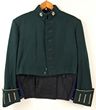 Army Militia - Officers dark blue wool blend tunic & tropical KD tunic to bandsman. 1st has scarlet stand collar, green piping to epaulettes & cuffs, two upper breast pocket, one having been professionally repaired. Australian Military forces KC buttons, one missing from opening & one from epaulette. Right angle tear below missing button. Not visible when jacket closed. Holes for 1 pip or title to epaulettes. Some moth holes to cuffs & lower skirts. Also KD tunic, 1942 dated. Brass bugle in wreath buttons, scarlet slip on epaulettes with black & gold cord at centre, harp & crown on red background on right arm. Buttons held in by string, considerable marks/stains. Fair. First is a rarely seen militia tunic.