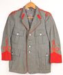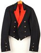 Army. C1920s/30s RAA ceremonial blues jacket. Dark blue red piping to epaulettes, back flap & front opening. Yellow braid to sleeves & collar, of stand up style in red felt. Large brass RAA shoulder titles, no buttons. Brass 'D's for belt. No maker's or owner's tags. No evidence of rank. With a pair of later RAA dress trousers. Small moth holes to UL sleeve & LR sleeve o/w GC. Good example of a ceremonial/parade blues jacket to an RAA Gunner of the 1920s-30s period. Would restore well with correct buttons. (2)