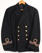 Navy - NSW Naval Brigade c1885. Very rare NSW Naval Brigade Officer's uniform c1890s to a Lieutenant Commander (Reserve). Dress coat with 2 vests & 2 pairs of pants. Size est M. Fine melton quality Officer's navy blue double breasted coat with long tail section at rear. Complete with all naval buttons (30 large gilt NSW Naval Brigade) FIRMIN & SONS, LONDON & BORMINGHAM. Inc a set of navy blue wool trousers with a gold stripe & a 2nd pair without the stripe. Plus 2 dark blue wool vests with all their buttons. One vest has NSW Naval Brigade buttons while the other has QVC RN buttons. Only the coat has a label. It is named to 'Lieutenant Jackson 11/85'. There are no other labels. Very clean with little or no wear. Tarnish to some buttons. Moth grazing to NSW NB vest in one area. Slight fraying to left rank. A very rare Australian naval uniform grouping in outstanding condition. May be researchable.