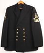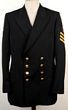 Navy RANR (NS) Ordinary Seaman's wool blues top & pants (winter uniform). Red insignia to L sleeve RANR - (NS) indicating 1950s National Service in the RANR. Those who opted for RAAF or RAN NS were only considered if they volunteered to serve outside Australia. GC minor moth damage. Quite a rare naval uniform to the RANR (NS) which operated between 1951 & 1959. Navy dress jacket, double breasted complete with all QC buttons. Rank insignia to Petty Officer with 2 chevrons & technical trade propeller gilt badge over letter 'P'. May have had prior Army Service as Army gilt button sewn on sleeve below gilt trade badge. CGCF tag to back of collar. VGC.