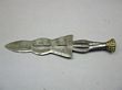 Congo. Knife: 'Zapozap' tribal knife. c.1900-40 Also used in the Congo Region as Money & for Trade. 43 cm long. Made from steel & brass adornments. Double sided decorative blade. Steel bound & studded grip. A very interesting & unusual ethnographical item. EF. |