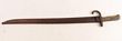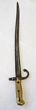 France Bayonet. 1866 chassepot sword bayonet with yataghan style blade, age darkening to blade with some minor chips to blade edge. Alcoso trademark present on blade, brass hilt with small hole. Missing locking stud & spring. Light pitting to cross guard. No scabbard. Average condition. |