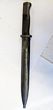 European/German? Mauser bayonet. Top of handle marked 43572, fullered unmarked blade, 24cm long, wooden grips with blackened ball-tipped scabbard. GC. |